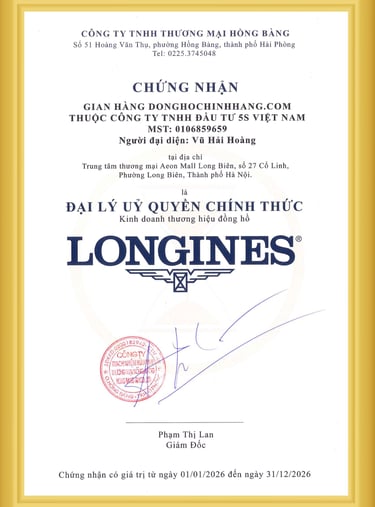 Donghochinhhang.com là đại lý ủy quyền chính thức của Longines tại Việt Nam, cung cấp các bộ sưu tập nổi bật như Master Collection, HydroConquest hay Longines Spirit. Khách hàng khi mua Longines tại showroom của chúng tôi sẽ được đảm bảo 100% hàng chính hãng, nhận đầy đủ sổ bảo hành toàn cầu có giá trị tại tất cả trung tâm dịch vụ ủy quyền trên thế giới.