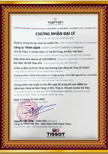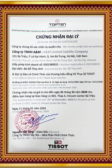 Tất cả sản phẩm phân phối tại Donghochinhhang.com đều đi kèm giấy chứng nhận đại lý ủy quyền từ hãng, được trưng bày tại hệ thống showroom cao cấp tại các trung tâm thương mại lớn tại Hà Nội và Hải Phòng. Đặc biệt, khi mua hàng tại đây, khách hàng sẽ nhận được đầy đủ chế độ bảo hành toàn cầu theo chính sách quốc tế của từng thương hiệu.