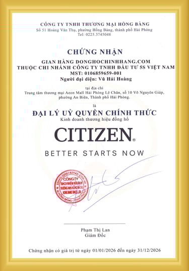 Donghochinhhang.com là đại lý ủy quyền chính thức của Citizen tại Việt Nam, mang đến sự lựa chọn đa dạng từ dòng thể thao Promaster đến Elegant cho nữ giới. Sản phẩm được bảo hành toàn cầu và luôn có sẵn linh kiện tại trung tâm dịch vụ ủy quyền.